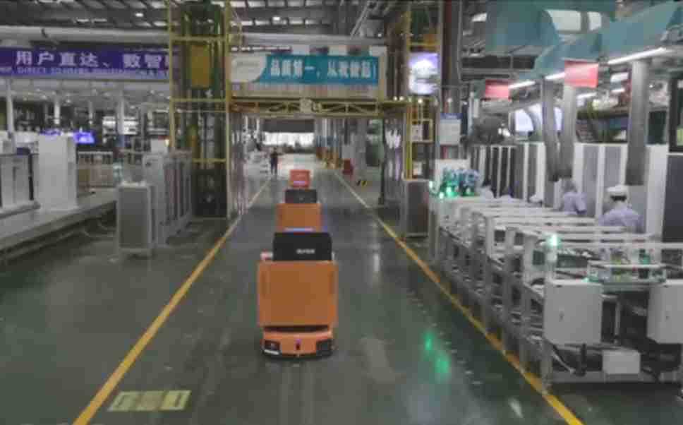 为车载冰箱物流配送打造的智能解决方案,,包含产中物流通过潜伏举升AMR搬运至线边,,,产后成品物流智能仓储,,,流程包含产中物流智能齐套入库,,线边安灯叫料AMR智能配送至线边,,成品入库、、、出库,,,,通过无人堆高车机器人,,智能仓储管理替代人工作业管理,,,实现更高存储、、、、更高效率、、、、更具柔性化的解决方案。。。