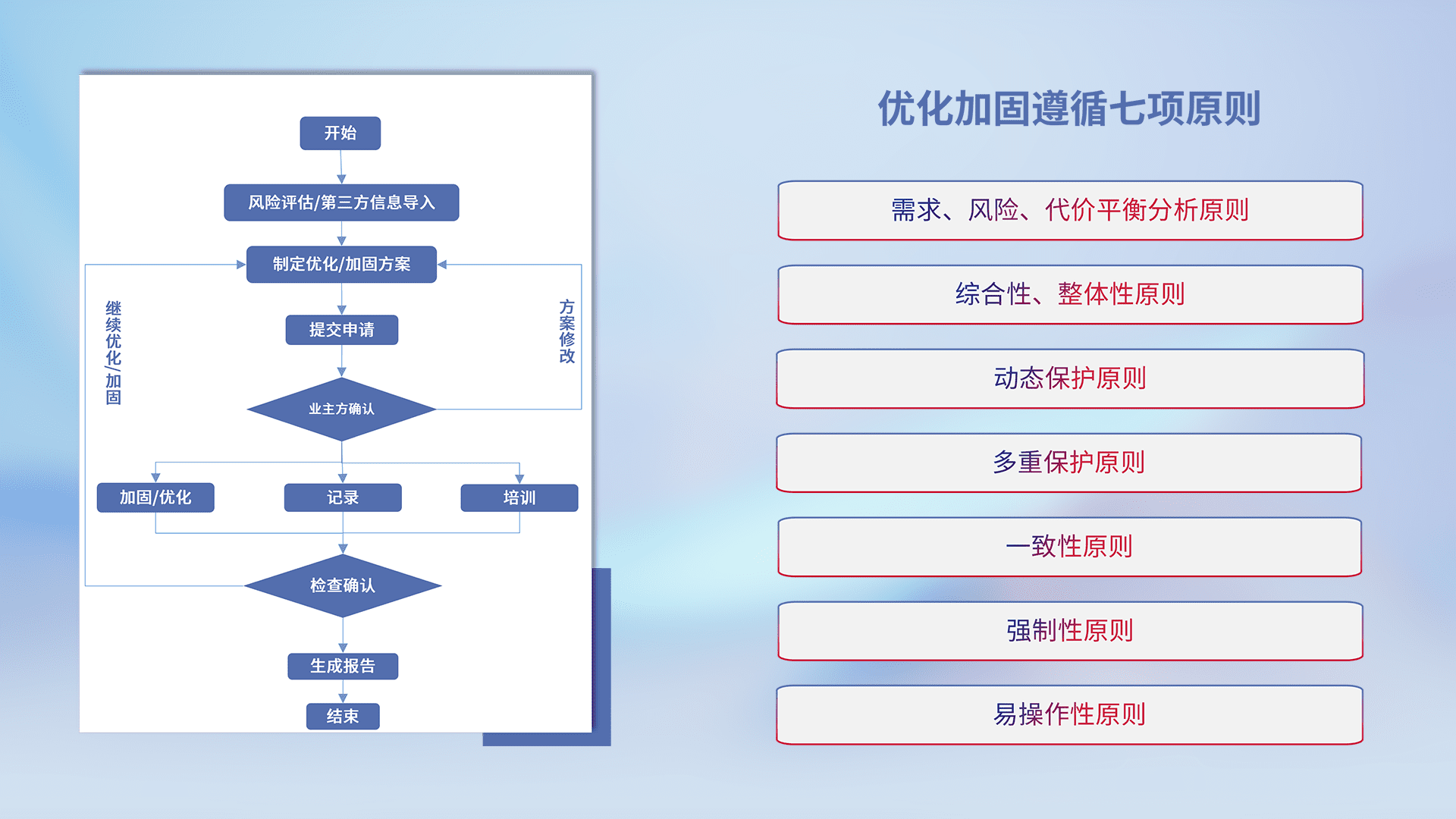 最大程度利用现有资产,,,对评估发现的问题进行封堵与整改,,,,防止漏洞被利用,,,提升整体网络安全性,,为客户带来高标准的优化加固服务。。